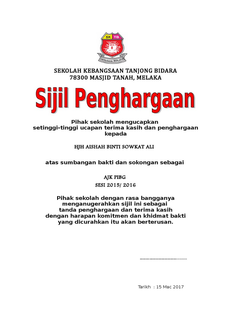 Related : Contoh Sijil Penghargaan Ajk Pibg - Savesave contoh sijil penghargaan for later..
